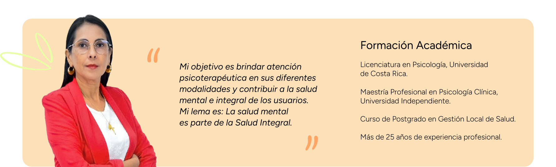 “Mi objetivo es brindar atención psicoterapéutica en sus diferentes modalidades, para contribuir a la salud mental e integral de los usuarios.